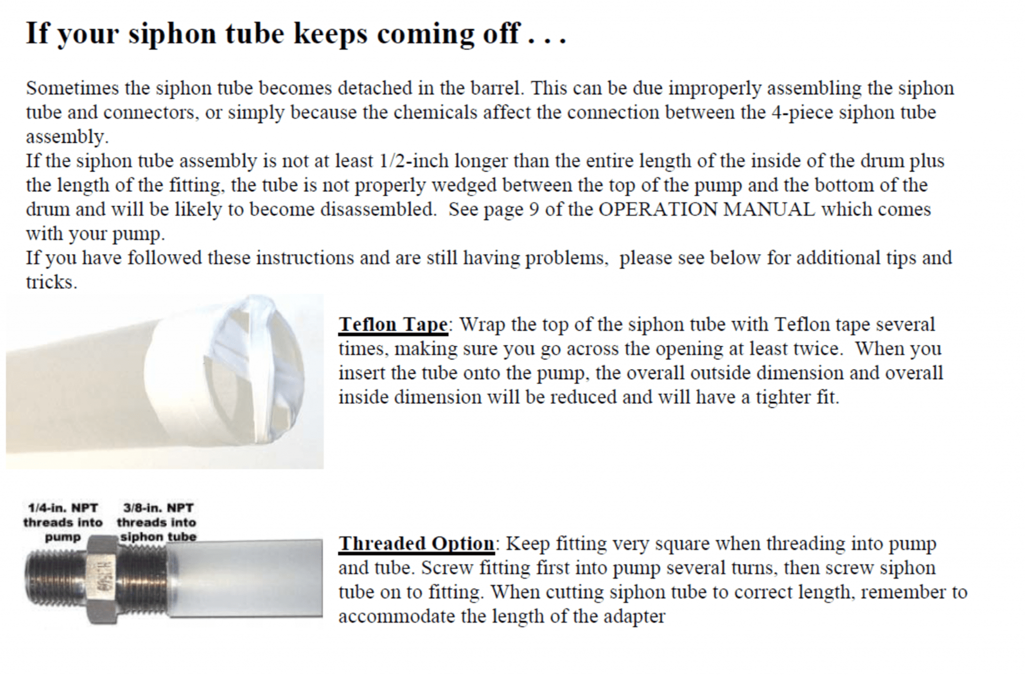 Static Conductive EPDM Pumps with remote tap for Class 1 and 2 Flammable liquids such as Micronox MX 230, Methyl Methacrylate, Alpha-EF-Fluxes and others. Check compatibility guide for selection. For viscosities like water, dispensing up to 4GPM Flow is good up to 270 centipoise. INCLUDES 1 pump, siphon tube set for up to 48 inches, barrel standoff with 2-inch pipe thread fitting, 3 gram packet of molykote 111 grease, 6-foot grounding cable with alligator clip, 3 foot bonding cable and single medium drum seal fits the barrel standoff.